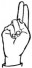 На ћирилици написано ШАЛЕ ВУКОСАВЉЕВИЋ састоји се из 16 слова [?]. Исписано ћириличном једноручном азбуком за глувонеме: